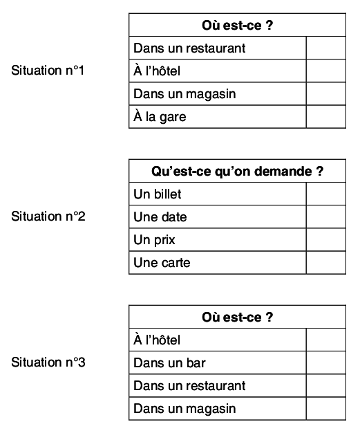 Ecouter[1] et cocher les bonnes cases